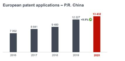 近日,歐洲發(fā)布了2020年專利申請(qǐng)各國(guó)數(shù)量表。其中中國(guó)在歐專利申請(qǐng)創(chuàng)造了新高,中國(guó)在歐洲專利申請(qǐng)的項(xiàng)目最多的前三個(gè)技術(shù)領(lǐng)域是數(shù)字通信、計(jì)算機(jī)技術(shù)和電力機(jī)械儀器能源類,其中中國(guó)數(shù)字通信專利申請(qǐng)占?xì)W洲專利局受理總數(shù)的26.5%。這一數(shù)據(jù)的發(fā)布,強(qiáng)有力的說(shuō)明了中國(guó)在科技創(chuàng)新方面的飛速發(fā)展。