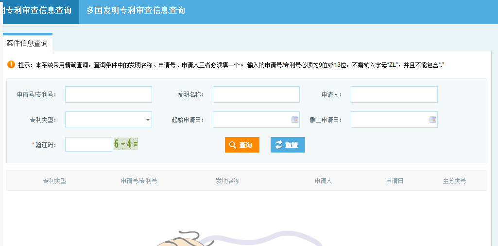 第三步,直接輸入專利申請(qǐng)?zhí)?,注意不要輸入倒?shù)第二位的小數(shù)點(diǎn),再輸入“驗(yàn)證碼”,也就是右側(cè)顯示的數(shù)學(xué)計(jì)算的結(jié)果,點(diǎn)擊“查詢”,即可顯示結(jié)果。