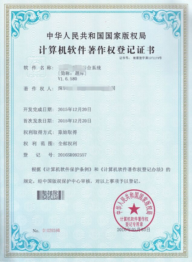 軟件產(chǎn)品登記證書是這樣的,供您參考下