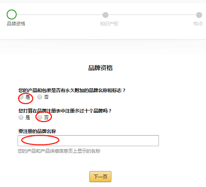 1)“品牌名稱”注意大小寫,備案后不能更改;