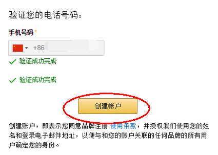 第5步:手機(jī)號(hào)碼驗(yàn)證通過(guò)后,點(diǎn)擊“創(chuàng)建賬戶”,即可進(jìn)入“注冊(cè)新品牌”界面;