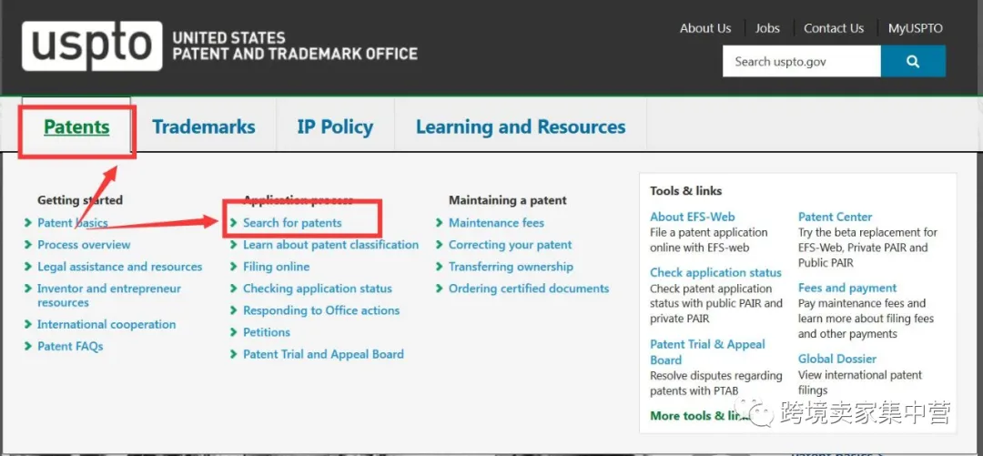 發(fā)明專利的查詢跟商標(biāo)類似,也是登陸美國商標(biāo)局的網(wǎng)站。