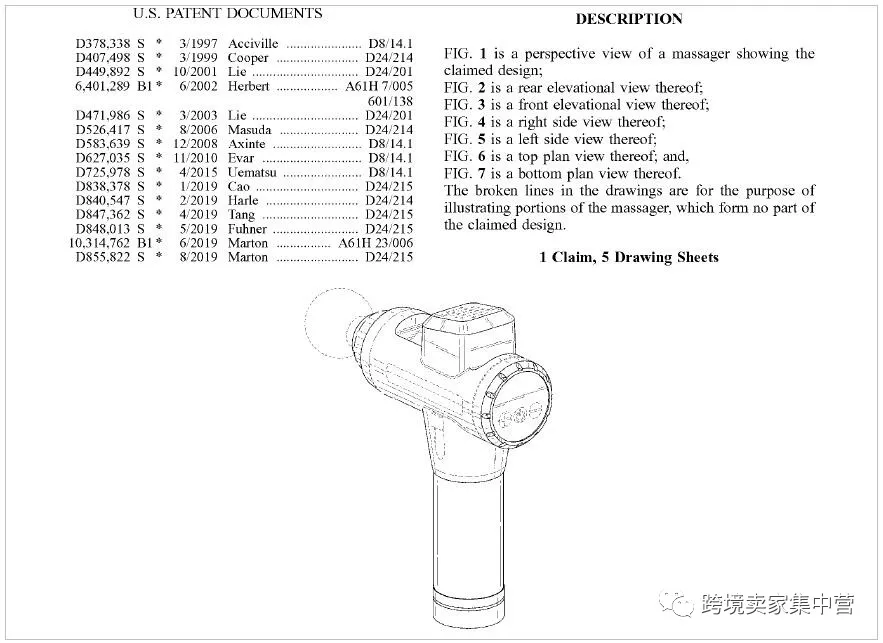 我們輸入的關(guān)鍵詞是“massage gun”,點擊任意一個搜索結(jié)果,就可以看到該專利的詳細(xì)情況及設(shè)計圖。