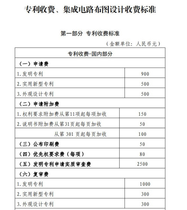 詳細的繳費項目及金額請參見《國家知識產權局收費公示》。