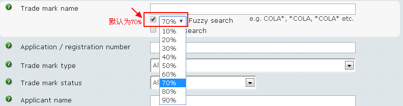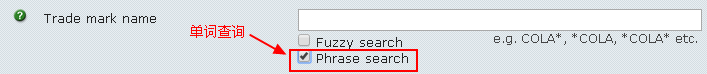 4.單詞查詢即查詢結果為包含該單詞的所有商標