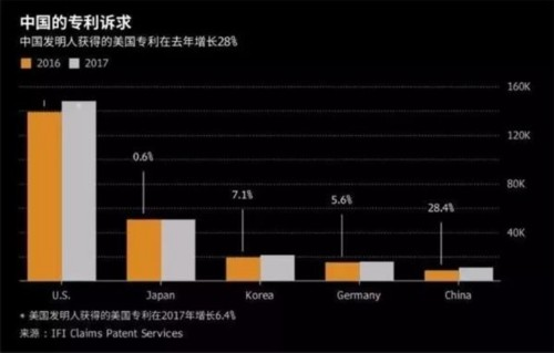 美國(guó)商業(yè)專利數(shù)據(jù)庫(IFIClaims)發(fā)布的最新報(bào)告顯示,不到10年時(shí)間里,中國(guó)企業(yè)在美國(guó)獲得專利數(shù)量已增至此前近10倍;特別是2017年較2016年增長(zhǎng)28%,中國(guó)首次成為前五大美國(guó)專利獲得國(guó)。